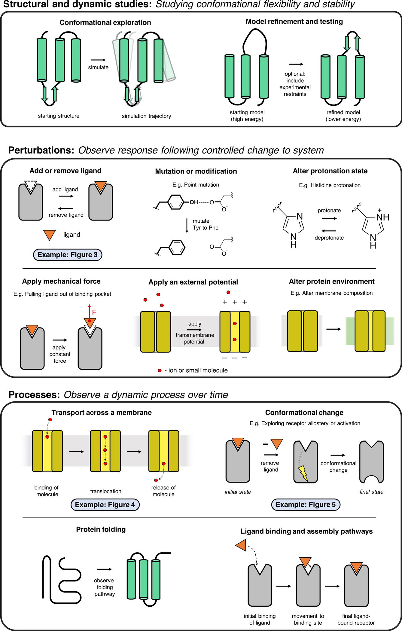 Below, is figure 2 from Hollingsworth and Dror's review (Applications of molecular dynamics simulations):
